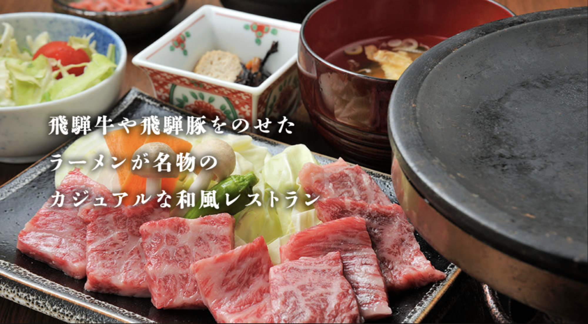 高山の風土が育んだ飛騨牛と、地元産コシヒカリ。